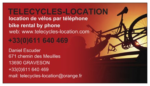 Un simple coup de fil et nous vous livrons sans supplément à l'endroit que vous désirez dans un rayon de 20 km autour de Saint Remy de Provence et pour une balade sans souci dans les Alpilles et dans la montagnette.